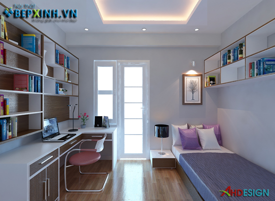 Nội thất phòng làm việc nhà anh Thanh Thiết kế nội thất phòng làm việc tại nhà, một không gian làm việc với các giá để đề và bàn làm