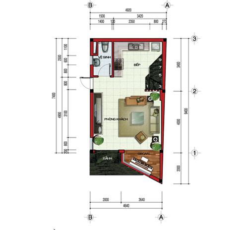 Thiết kế nội thất cho nhà ống Căn nhà dưới đây có bề ngang 4.64m*9.4m. Với diện tích chỉ khoảng 43m2 một tầng, Kiến trúc sư bố trí toàn bộ