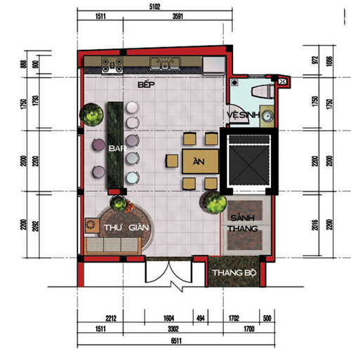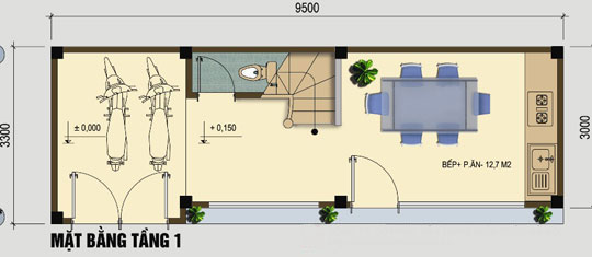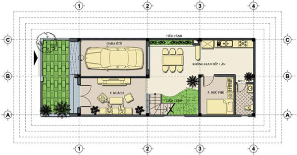 Thiết kế nhà lệch tầng diện tích 3,3m x 30m Thiết kế nhà có chiều sâu ngắn trên mảnh đất có diện tích 3,3m x 30m, hướng Đông Nam, hơi