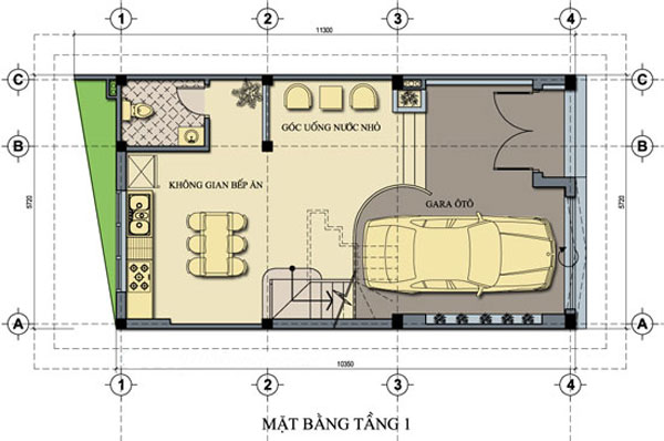 Thiết kế nhà 3 tầng, đất hình thang Tôi đang muốn xây 1 căn nhà 3 tầng, 1 tum trên mảnh đất có mặt tiền 5,72m, chiều dài 10,35m và
