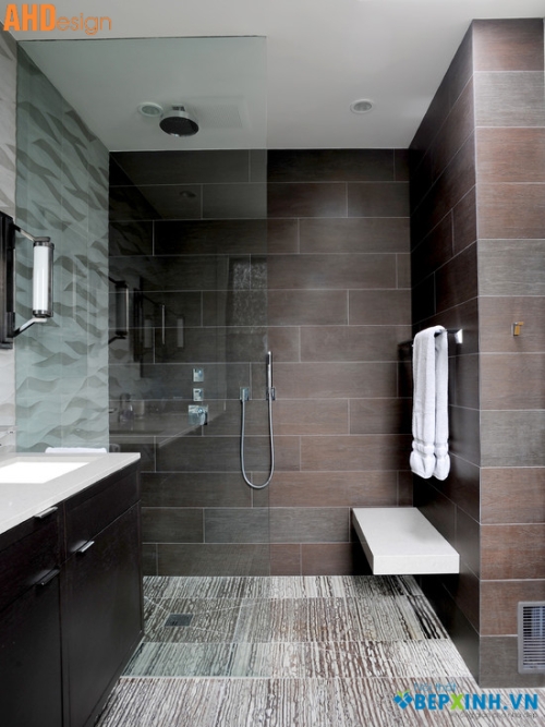 Lựa chọn phòng tắm đứng Trong xu hướng tiết kiệm diện tích sử dụng, nhất là với dạng nhà phố, nên khu vực nhà tắm thường được làm tối giản,