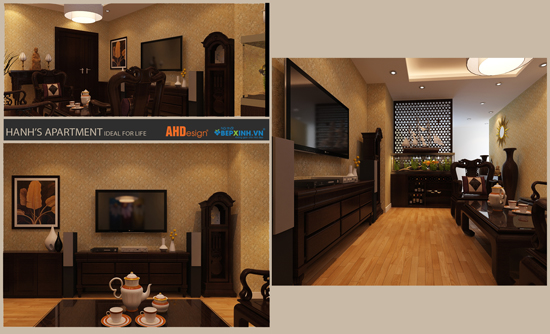 Nội thất phòng khách chung cư Trung Văn Thiết kế Nội thất phòng khách chung cư Trung Văn với phong cách cổ điển chủ đạo từ đồ nội thất gỗ,
