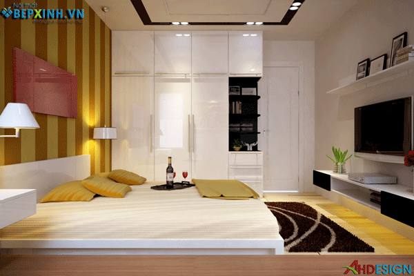Giường ngủ, tủ quần áo, kệ ti vi nhà chị Cúc Thiết kế nội thất phòng ngủ nhà chị Cúc, chi tiết với thiết kế giường ngủ, tủ áo Chất