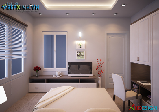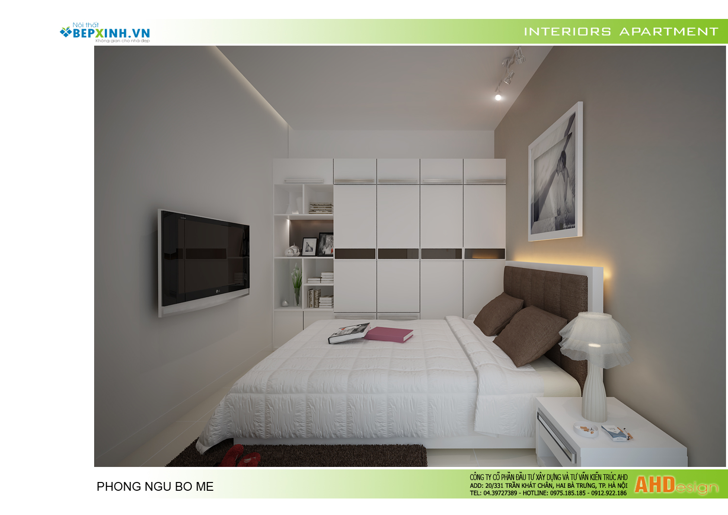 Thiết kế nội thất phòng ngủ nhà chị Vân anh Thiết kế nội thất phòng ngủ đẹp với phong cách tor sur ton trắng nâu đậm và nâu nhạt với
