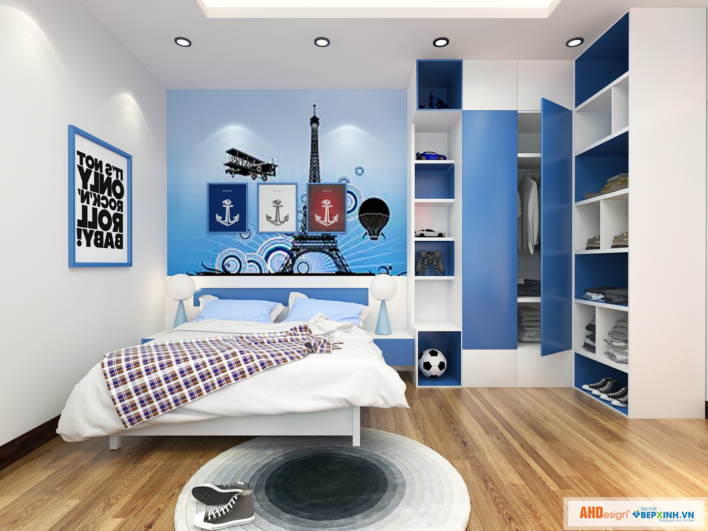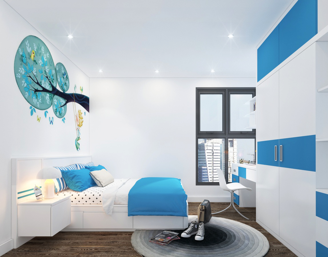 Thiết kế nội thất phòng ngủ bé trai nhà anh Tuấn – Thái Nguyên Nội thất phòng ngủ trẻ em mang màu sắc sinh động, tạo cảm giác vui tươi