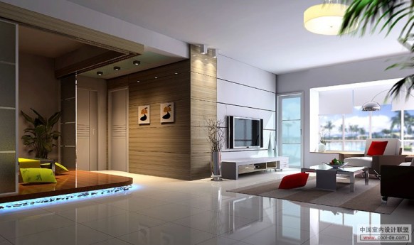 Khoáng đạt và tươi mới là những ấn tượng nổi bật khi bước vào căn phòng này. Lựa chọn nội thất cũng như những nét trang trí đều vô cùng nhẹ nhàng trong một bảng màu trung tính. Xanh lá nhạt là màu sắc đặc trưng của mùa xuân những cũng rất thích hợp cho căn hộ mùa hè. Đây cũng là màu chủ đạo trong không gian này, bức tranh tường hình bông hoa khổ lớn đã đem hơi thở thiên nhiên tràn ngập phòng ngủ.Sự kết hợp của nó với màu trắng tinh khiết đem đến một cảm giác vô cùng thư giãn, dễ chịu cho thị giác cũng như mọi giác quan. Điểm xuyết một vài nét khác biệt bằng các phụ kiện từ chất liệu gỗ không làm mất đi sự tự nhiên mà còn làm tăng thêm sự gần gũi, ấm cúng.